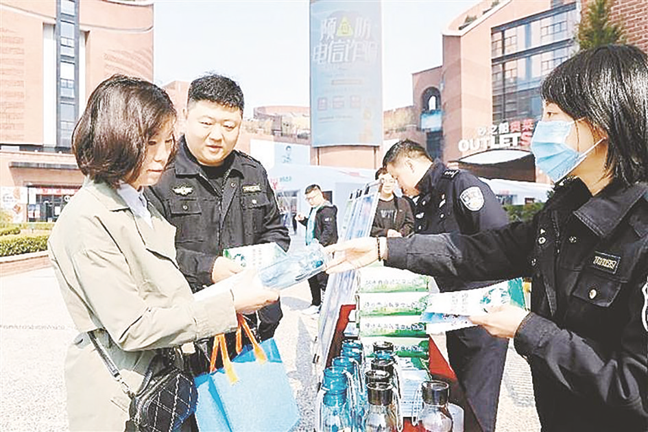 在活动现场,西安浐灞国际港生态环境局工作人员、西安市公安局浐灞分局民警和长安号志愿者通过发放传单、设置展板等方式,重点宣讲《中华人民共和国森林法》《西安市秦岭生态环境保护条例》等法律法规。图为工作人员向群众发放宣传品。