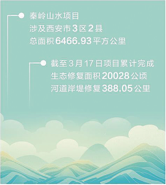 3月20日,记者从西安市山水林田湖草沙一体化保护和修复工作领导小组办公室获悉:陕西秦岭北麓主体山水林田湖草沙一体化保护与修复项目(以下简称“秦岭山水项目”)有序推进。截至3月17日,项目累计完成生态修复面积20028公顷,河道岸堤修复388.05公里。
