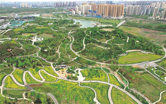 近年来,西安市从建设“城市公园”到建设“公园城市”,让开窗有景的美好期盼逐步变为现实。图为4月9日,市民在西安长安公园内散步。