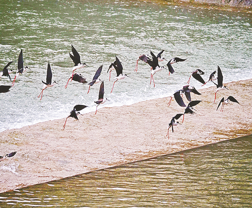 4月2日,摄影爱好者在商州城区两河口城市运动公园水域发现25只长腿鹬。近年来,商洛市生态文明建设、生态环境保护成效显著,为更多鸟类营造了良好的生存环境。