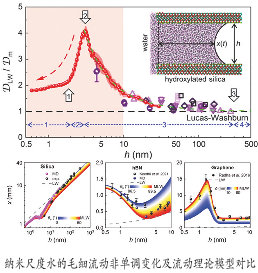 由于表面效应、小尺寸效应等纳米尺度效应,纳米空间受限水完全有别于宏观体相水,经典流体力学理论通常不再适用。因此,如何通过充分考虑纳米尺度效应实现纳米空间受限水流动过程的理论描述就成为重要的学术难题。但受限于实验技术,目前对纳米尺度毛细流动的直接实验研究止步于10纳米。