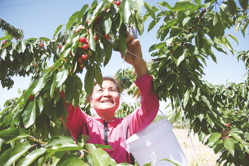 近年来,渭南市白水县不断优化农业产业结构,积极引导群众发展樱桃等特色产业,不仅带动了村民增收致富,也为乡村经济发展注入了新的活力。图为近日,白水县城关街道白堡村村民在采摘樱桃。