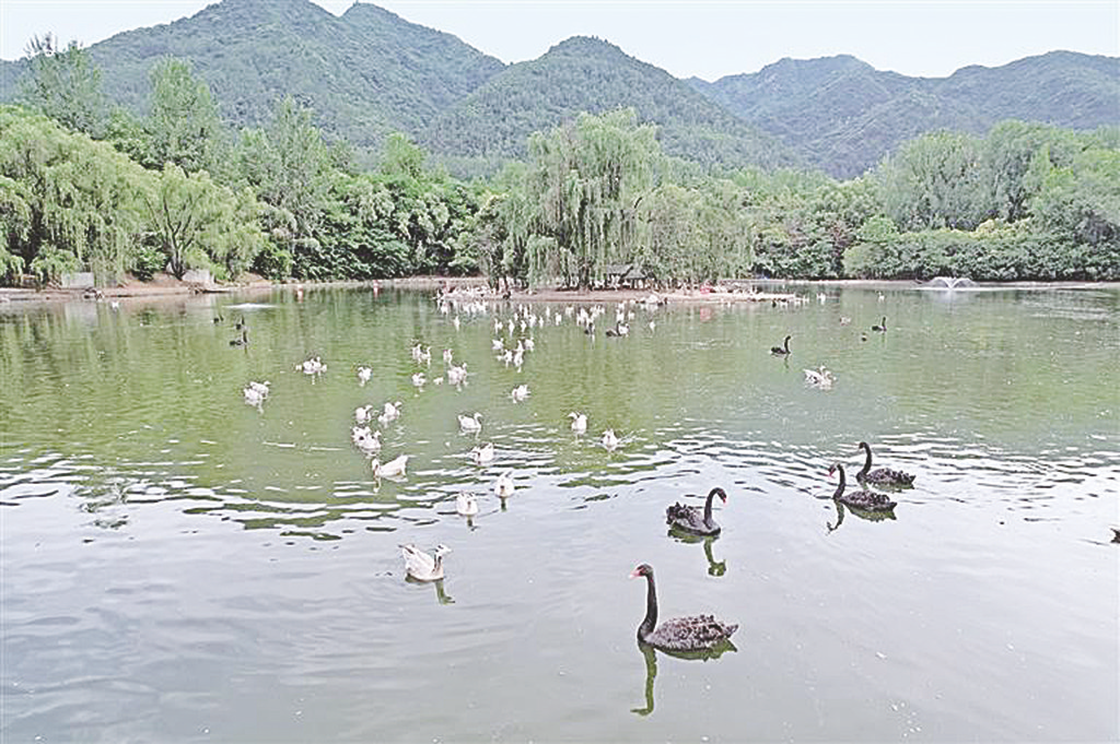 6月12日,西安秦岭野生动物园内,黑天鹅等鸟类在水里嬉戏。近年来,陕西省不断加大对秦岭自然生态系统和重要物种栖息地的保护力度,维护区域生态平衡,增强秦岭生态系统稳定性、持续性。