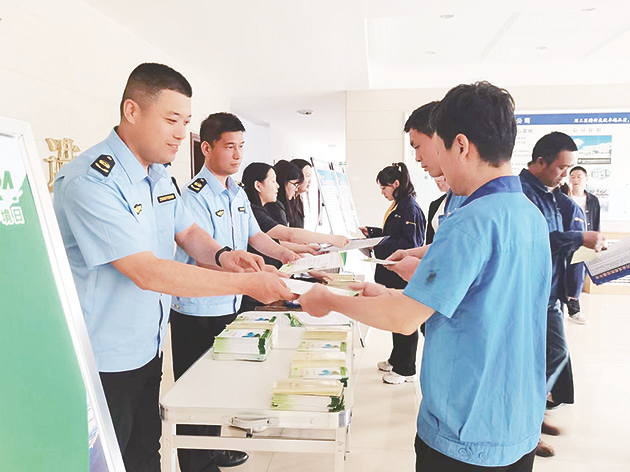 活动现场设置了宣传咨询点位,向职工发放了《中华人民共和国环境保护法》《生态文明知识手册》等环境保护法律法规和知识读本,讲解环境违法行为涉及的行政处罚、刑事犯罪情形和日常工作生活中践行环保理念等知识,指导企业严格遵守各项环保制度,认真执行各项环境管理标准,全面提升守法意识,引导企业主动知法、懂法、守法,时刻扛牢污染防治主体责任,规范生产、达标排污,守牢底线、不碰红线。