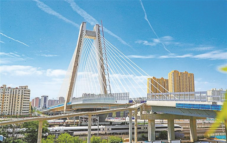 6月13日,全国单体最大转体吨位跨越铁路的双索面预应力混凝土斜拉桥——咸阳彩虹二路高架桥采用平转法施工,历时105分钟,顺时针转体93度,实现精准对位,顺利完成第二次塔梁转体。