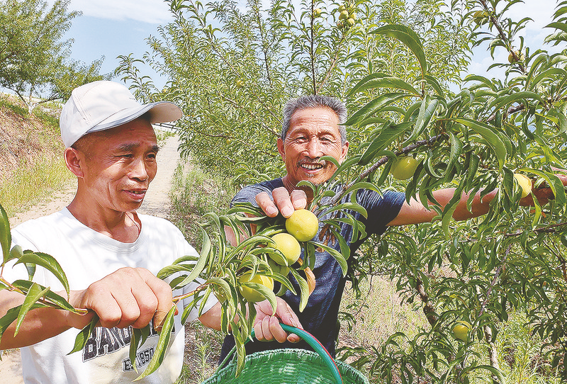 近年来,安康市汉阴县城关镇大力发展特色林果产业,先后在赵家河、月河、草桥、长窖、中坝五个村发展蜂糖李2000余亩,因其果形大、口感好、甜度高,深受广大消费者喜爱。图为7月3日,在城关镇长窖村蜂糖李产业园,村民正在采摘蜂糖李。