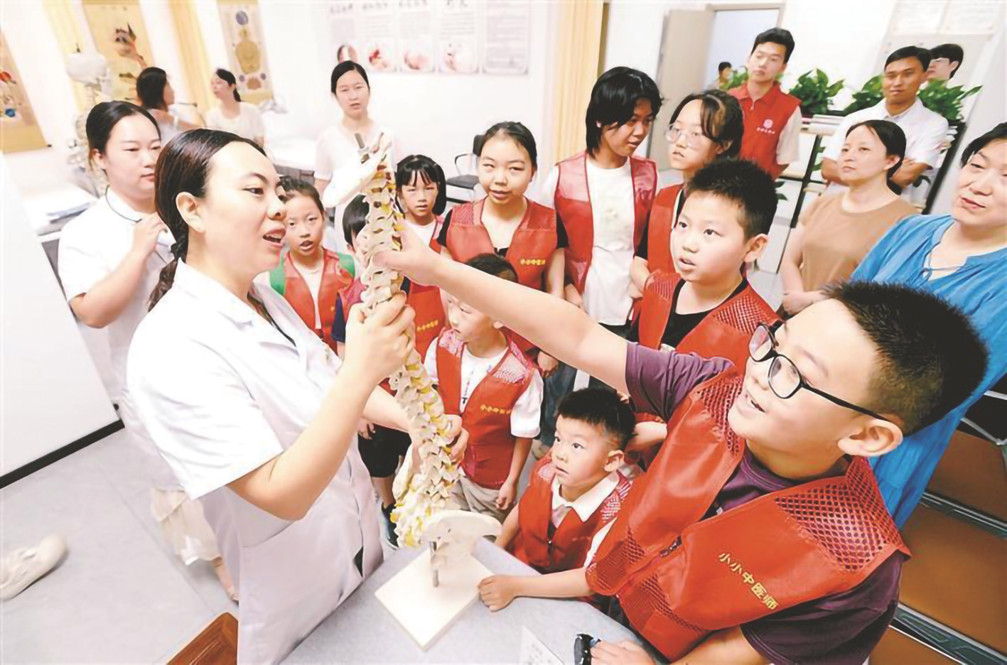 7月24日,西安市未央区辛家庙街道恒大名都社区联合西安未央广泰中医门诊部开展研学活动,邀请社区儿童及家长沉浸式体验中医药文化的博大精深。在活动中,医务工作者向孩子们讲解了中医诊断“望、闻、问、切”四步法,并指导孩子们通过“看、嗅、摸”等方式,认识中草药的形态及功效。