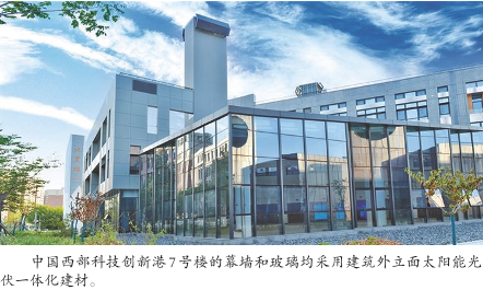 中国西部科技创新港7号楼是全国首个智慧绿色能源建筑,该建筑将太阳能光伏技术与建筑进行深度融合,实现太阳能光伏组件的建材化标准。在建造过程中,用太阳能光伏幕墙替代传统幕墙,用太阳能光伏玻璃产品替代传统屋顶面材,实现一物两用,既满足建筑外围护功能,又让建筑本身实现绿色低碳发电,达到建筑物用电自给自足。