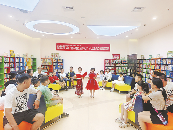 9月8日,渭南市临渭区图书馆举办“童心向党启航明天”少儿红色经典诵读活动。