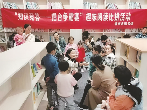 10月26日,渭南市图书馆举办了第五期“趣味阅读大比拼 知识擂台展风采”竞赛活动,吸引众多读者关注与参与。图为主持人向现场观众提问。