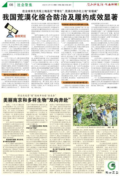 我国荒漠化综合防治及履约成效显著