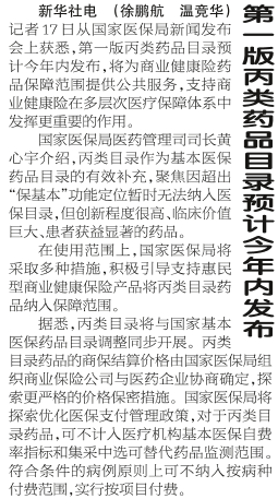 第一版丙类药品目录预计今年内发布