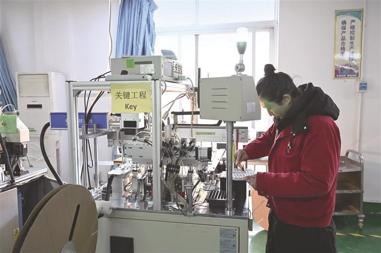 近年来,汉中市城固县依托坚实的工业基础,在工业领域展现出良好的发展态势。春节期间,重点企业纷纷投入新一轮生产,以“起步即冲刺”的姿态抢开新局。图为2月6日,汉中锐杰电子有限责任公司工人在生产电子元件。
