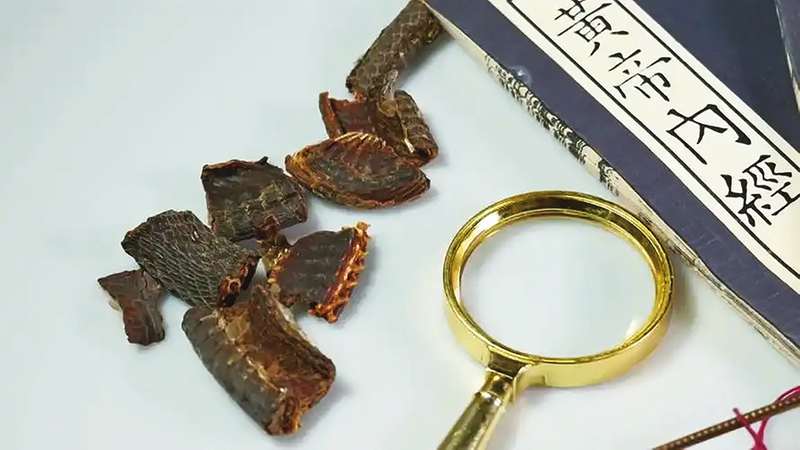 蛇蜕 俗称蛇蜕下来的皮,也有悠久的药用历史,民间称其为“祛风定惊的宝物”。临床上,蛇蜕被应用于治疗各种皮肤病,如湿疹、银屑病和皮炎等。