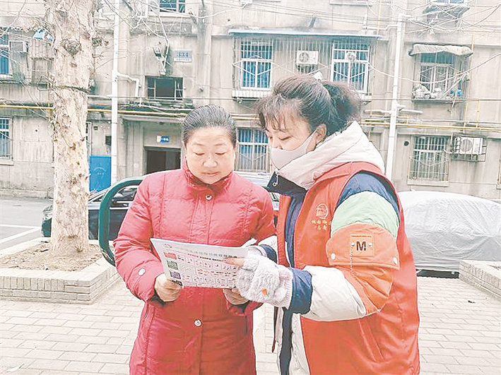 社区工作人员向居民讲解垃圾分类知识。