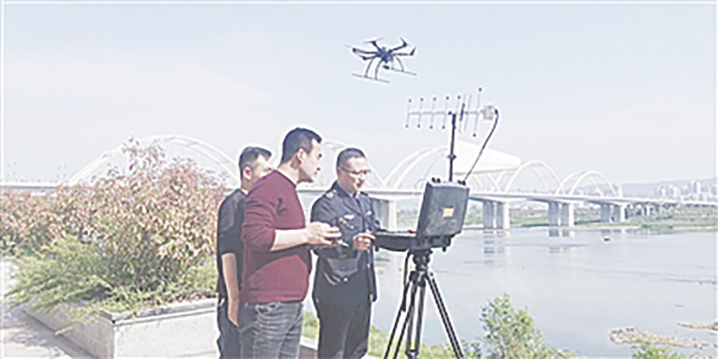 安康市生态环境执法人员利用无人机沿河进行检查。
