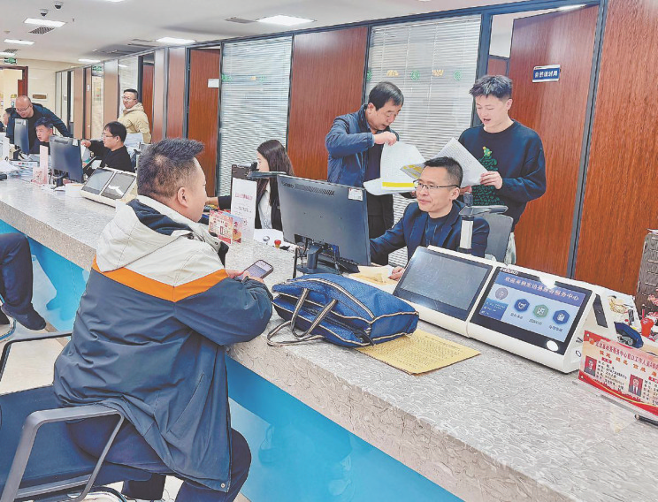 2024年以来,榆林市定边县行政审批服务局探索推出了“三分离”审批模式,让企业和群众的办事效率和体验得到显著提升。图为办事群众正在政务服务窗口办理业务。