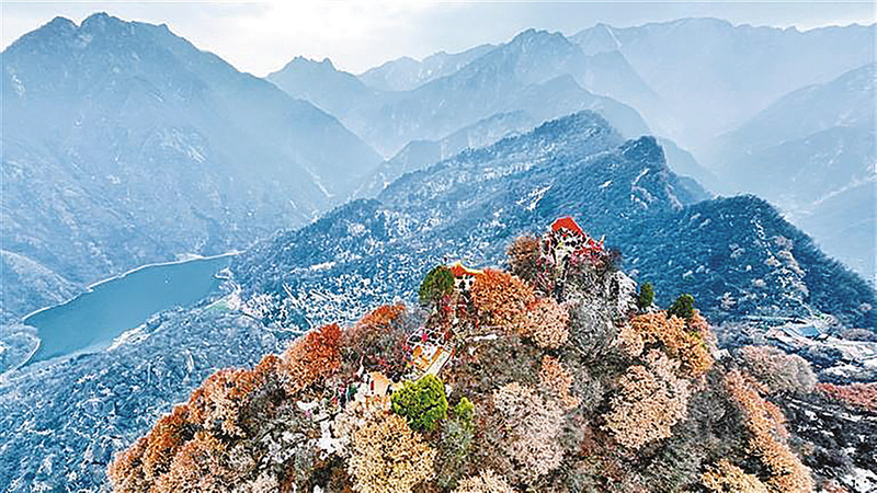 3月1日,西安市翠华山景区的龙脊梁全面开放,不少游客趁着好天气前来登高望远。图为游客从龙脊梁登顶翠华峰观看风景。