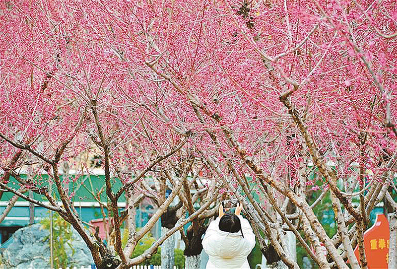 3月3日,西安市开元公园梅花谷里的梅花盛开,吸引市民游客前来赏花、拍照。
