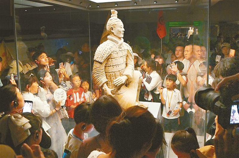 “五一”假期,秦始皇帝陵博物院共接待观众 330452 人次,同比增长16%。图为5月5日,来自海内外的游客参观兵马俑。