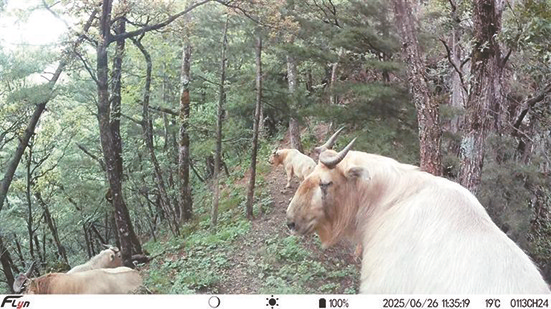 红外相机连续拍到野生动物 羚牛成群出没林中闲庭信步