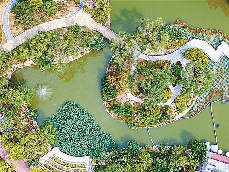 7 月22日,盛夏时节的西安市兴庆宫公园里绿树成荫,碧波荡漾,成为一幅美丽的城市生态画卷。