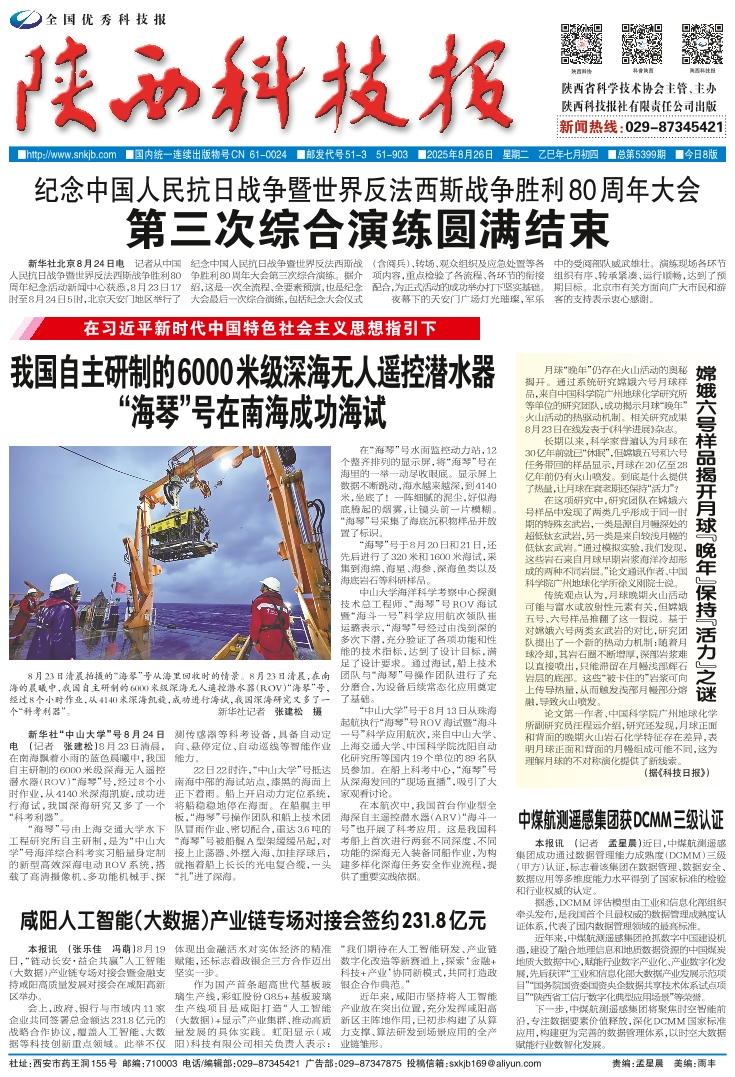 我国自主研制的6000米级深海无人遥控潜水器 “海琴”号在南海成功海试