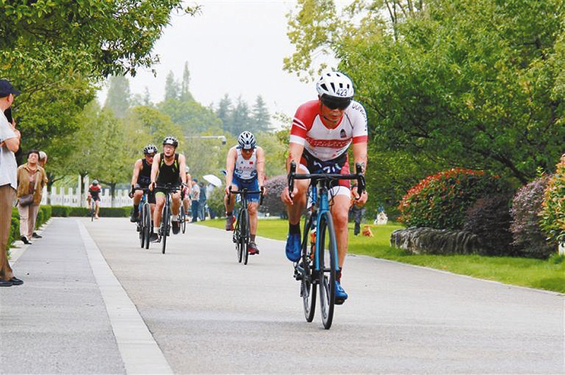 9月7日,由中国铁人三项运动协会指导、陕西省体育局主办的2025生态汉中铁人三项赛举行。来自15个省(区、市)的300余名运动员与俄罗斯、英国、黎巴嫩、南非等国家选手齐聚汉中,同场竞技。经过激烈角逐,16名选手分别斩获不同组别冠军。图为选手在进行自行车骑行项目比赛。