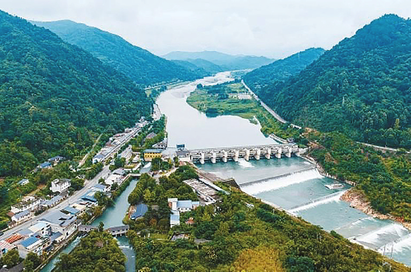 图为9月10日拍摄的四川彭州湔江堰(无人机照片)。 新华社发 张勇 摄