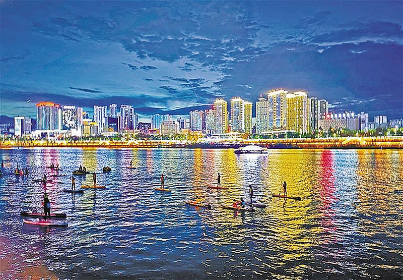 城水相融,人水相亲。今年以来,安康市对汉江两岸的防洪堤和江滩进行全面升级改造,围绕一江两岸打造开放共享的城市会客厅。随着汉江水生态保护与水环境污染治理持续推进,滨湖游购、水上运动等业态频频“上新”,河畅、水清、岸绿、景美的生态红利惠及更多群众。