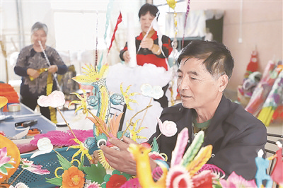 近年来,咸阳市基层老年协会积极发挥为老服务职能,促进老年人老有所学、老有所养、老有所乐。图为9月19日,泾阳县王桥镇社树村村民在老年人协会手工艺厂制作花馍。