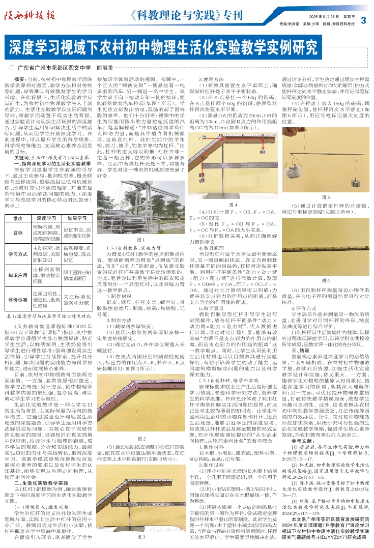 深度学习视域下农村初中物理生活化实验教学实例研究