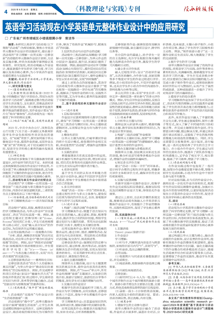 英语学习活动观在小学英语单元整体作业设计中的应用研究