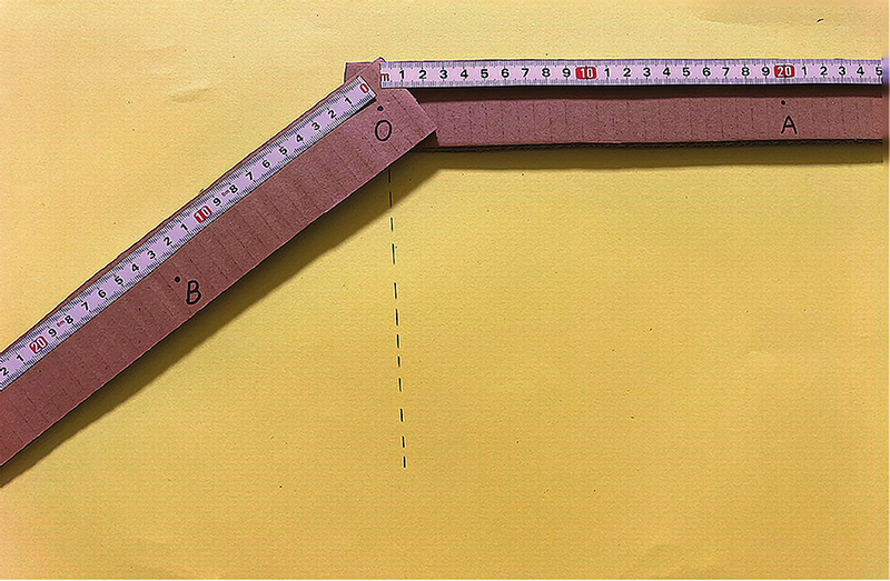 (2)使用热熔胶将两条厚纸皮按一定角度粘接固定。