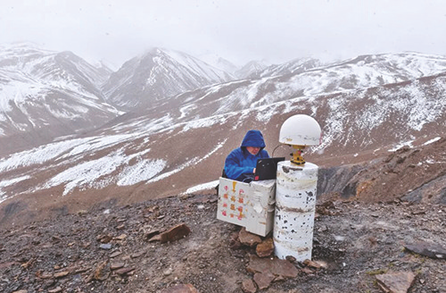 近日,自然资源部第一大地测量队第三中队在新疆维吾尔自治区塔什库尔干塔吉克自治县开展2025年度陆态网络全球卫星定位系统流动站观测工作。该项工作始于1998年开启的中国地壳运动观测网络建设。27年来,第三中队测绘队员坚守在监测一线,足迹遍布雪山草原、戈壁荒漠,用专业精神和坚韧意志守护着这一国家重大科技基础设施稳定运行。图为测绘队员在标准基线场地上对测量仪器进行精密检验,以确保观测数据的可靠性。
