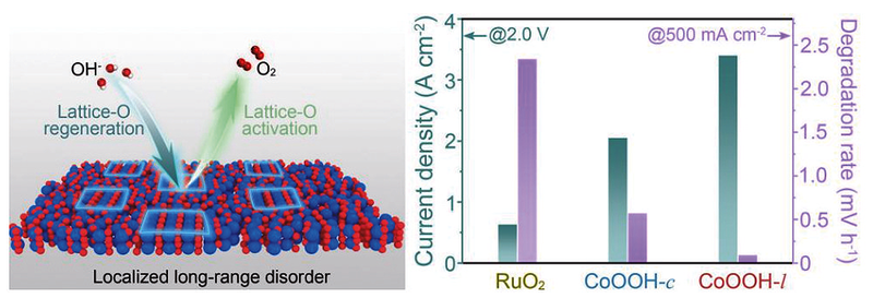 该研究成果以《规整重构CoOOH催化剂的长程无序度用于阴离子交换膜电解水》为题,发表于国际权威期刊《德国应用化学》。