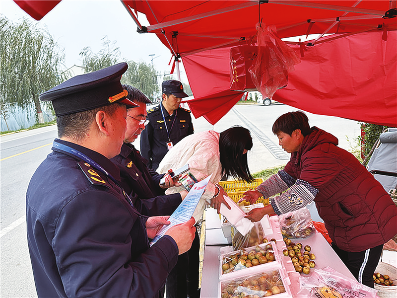 10月14日,渭南市临渭区市场监管局对辖区内地理标志规范使用情况开展了专项检查及地理标志基础知识科普宣传活动。图为检查现场。