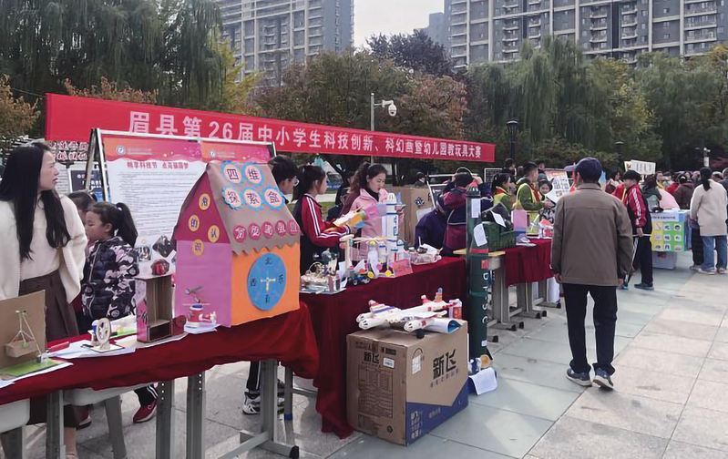 10月31日,宝鸡市眉县第26届中小学生科技创新大赛暨幼儿园教玩具大赛举行,全县初高中、小学、幼儿园、镇街教育组共37家单位踊跃参展。图为活动现场。