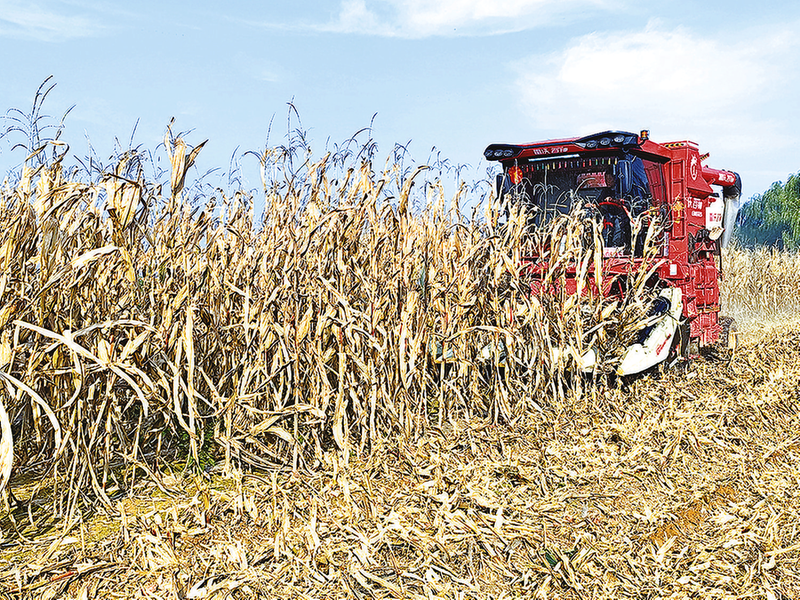 连日来,咸阳市永寿县群众抢抓晴好天气,利用人力、收割机在田间收获谷子、豆子、玉米等秋粮作物,确保秋粮颗粒归仓。图为10月27日,永寿县渠子镇卢庄村村民在收获玉米。