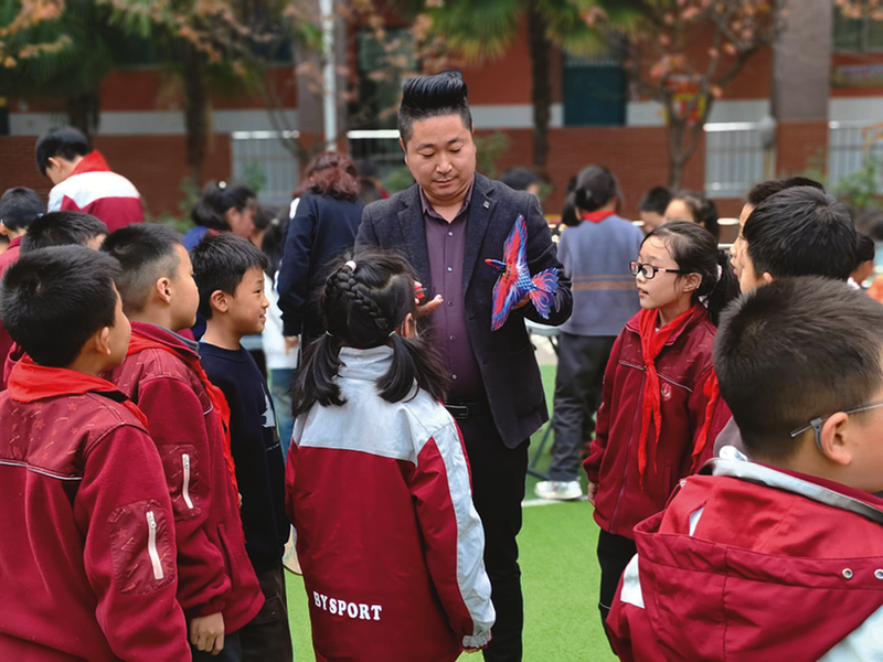 11月4日,宝鸡市青少年科技教育协会科普志愿者赴渭滨区石鼓小学开展科普实践活动。活动现场,机器人灵活舞动,科学实验表演精彩绝伦,现场掌声和欢呼声此起彼伏。图为志愿者操作仿生扑翼鸟。