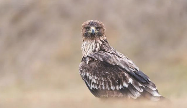 白肩雕是大型猛禽,成鸟以棕褐色羽毛为主,肩部有明显白斑。它们栖息于低山森林至荒漠地带,常单独活动,善翱翔。白肩雕主要以啮齿类、雉鸡等动物为食,分布于欧亚大陆和非洲,在我国常见于新疆等地。 (刘洪)