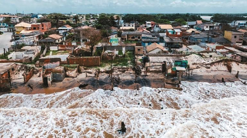 10月4日,在巴西里约热内卢州阿塔福纳拍摄的受海岸侵蚀影响的民房(无人机照片)。联合国政府间气候变化专门委员会去年发布的一份报告将阿塔福纳列为全球31个受海平面上升威胁最严重的地区之一。