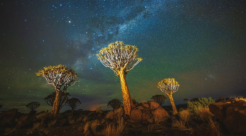 箭袋树,主要分布于非洲南部,尤其是纳米比亚的干旱地带。虽名为“树”,它实则是一种巨大的芦荟,经过漫长演化,能傲然屹立于炙热沙漠中。其厚实的树干用于储存宝贵水分,独特的分枝则能有效反射烈日热量,从而在极端环境中顽强生存。