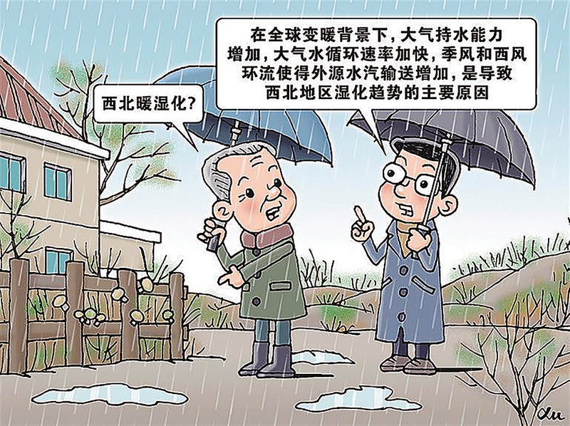戈壁荒滩下了创纪录的连阴雨,沙漠腹地出现汹涌洪水……近年来,我国西北地区出现一些气候异常现象,引发人们的关注。在全球变暖背景下,大气持水能力增加,大气水循环速率加快,季风和西风环流使得外源水汽输送增加,以及高山区冰川、积雪融化和径流增加是主要原因。西北地区暖湿化是一把“双刃剑”,尽管带来一些风险,如增加当地农业病虫害风险、加剧河西走廊水资源补给的脆弱性等,但也给生态建设和农业带来新机遇。重塑安全认知、守好安全底线,应成为各行业应对暖湿化的当务之急。要将气候变化尤其是极端天气纳入灾害防御和安全管理方面,加强城市规划、重大工程、生态环境等适应气候变化的韧性。充分利用气候暖湿化的有利条件,因地制宜优化调整作物种类和种植结构,优化水资源调度和配置,加强高标准农田和韧性农田建设。