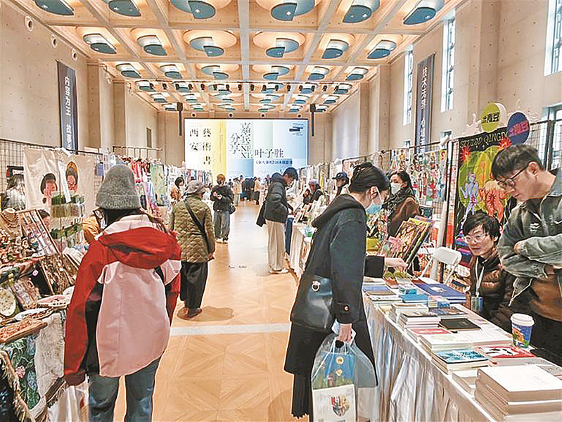 12月5日,第四届西安艺术书展在西影电影园区开幕。全国各地一大批艺术创作者及出版机构汇聚于此,通过艺术书刊、独立杂志、插画手作、摄影影像等多元形式,构建起可触摸的沉浸艺术体验空间。图为观众在现场参观。