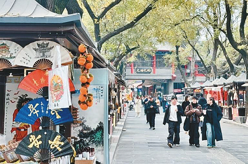 12月7日,市民游客在西安市书院门休闲游览。在这里,笔墨纸砚、文玩字画琳琅满目,人们漫步其间,在墨香中感受古城西安独特的文化魅力。