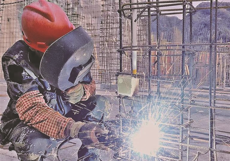 连日来,安康市宁陕县各大民生项目建设现场机械轰鸣声不绝于耳,建设者穿梭其间,为项目建设按下“加速键”。图为宁陕县龙泉博居项目工地,工人进行焊接作业。