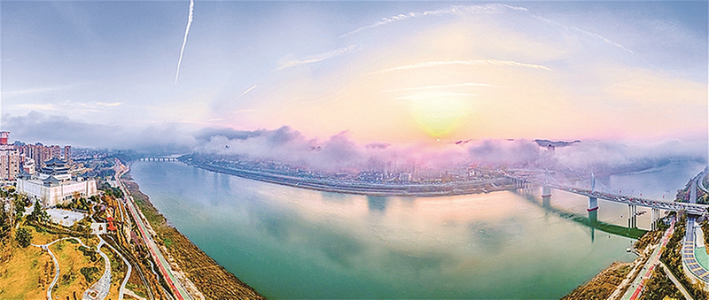 近年来,安康市坚持降碳、减污、扩绿、增长协同推进,持续改善生态环境质量,努力让天蓝、地绿、水清、土净成为发展新画卷。图为12月16日清晨,红日初升,安康中心城区在晨雾中苏醒。