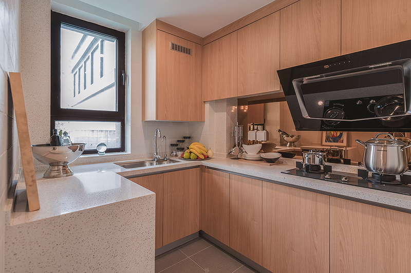 台面的常见种类 目前市场上主流的厨房台面材质主要有四类,适配不同使用场景。石英石台面是目前普及率最高的类型,以天然石英砂为主要原料(含量90%以上),混合树脂等粘合剂高温压制而成,硬度高(莫氏硬度6—7级)、耐刮擦、耐污渍、不易渗透且花色丰富,能模拟天然石材纹理,兼顾实用性与美观性。岩板台面属于高端材质,由天然原料经高压高温烧结而成,硬度极高(莫氏硬度7—8级),耐高温(可承受200℃以上高温)、耐刮擦、无孔隙不渗透,清洁方便但价格较高,加工难度大。天然大理石台面以天然大理石为原料,纹理独特、质感温润、装饰性强,但质地较软(莫氏硬度3—4级),易被刮花,表面有孔隙,容易渗透污渍和染色,需要定期养护。不锈钢台面多采用304或316不锈钢材质,耐高温、耐腐蚀、无甲醛、易清洁、抗菌性强,适合现代简约风格厨房,但外观冰冷,容易产生划痕,修复难度大。