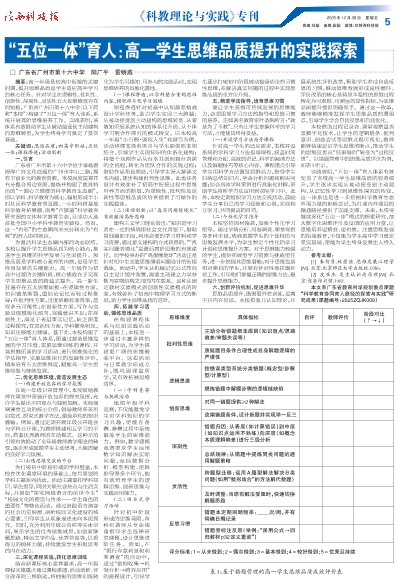 “五位一体”育人:高一学生思维品质提升的实践探索